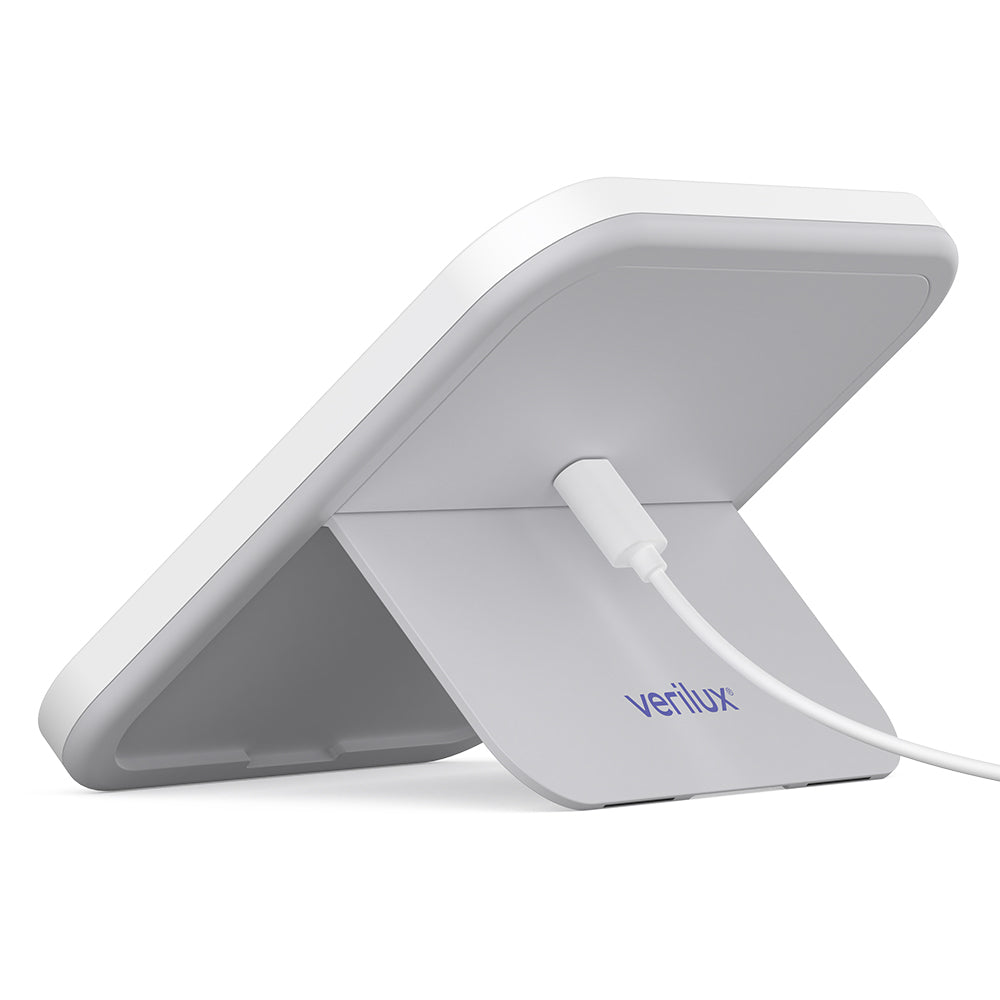 Take your light therapy on the go with the HappyLight Mini, designed with a super slim profile that easily fits into your bag or luggage. Set it up anywhere using the included USB-C cord, which connects to the AC adapter or plugs directly into your laptop’s USB port. Customize your experience with three brightness levels of neutral-tone light and a convenient countdown timer, programmable for up to one hour in 15-minute increments. The 90° adjustable stand lets you position the lamp at the perfect angle. Enjoy personalized light therapy wherever you are!