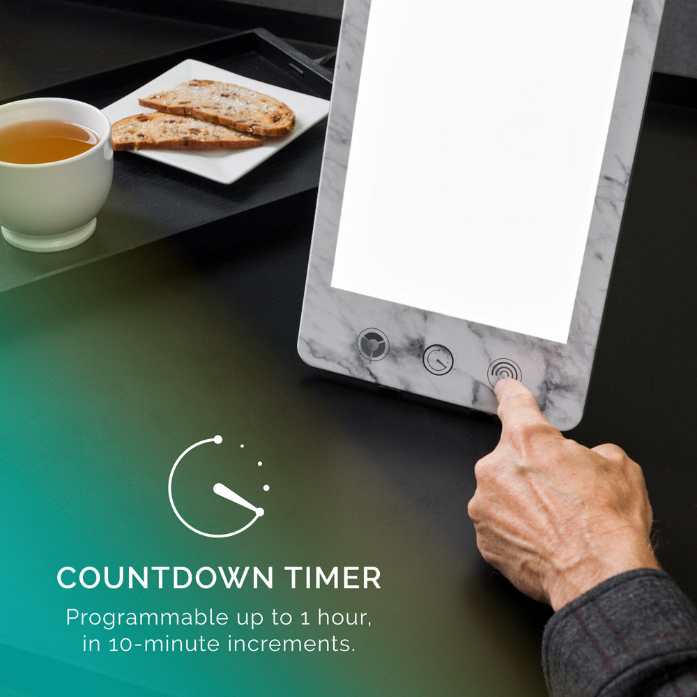 Customizable settings allow you to achieve a light therapy experience that's most comfortable for you. Safely bring daylight indoors with LED technology that offers full-spectrum, 10,000 lux light without any harmful UV rays.